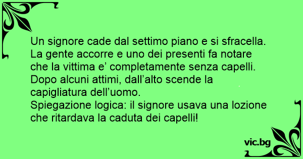 Un signore cade dal settimo piano e si sfracella. La gente accorre e uno dei presenti fa notare che la vittima e’ completamente senza capelli. Dopo alcuni attimi, dall’alto scende la capigliatura dell’uomo.