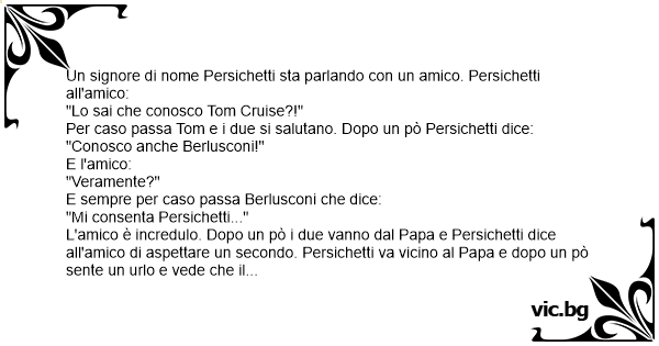 Un signore di nome Persichetti sta parlando соn un amico. Persichetti all'amico: