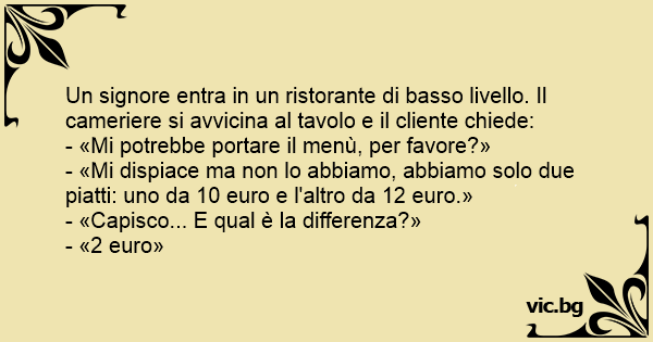 Un signore entra in un ristorante di basso livello. Il cameriere si avvicina al tavolo e il cliente chiede: