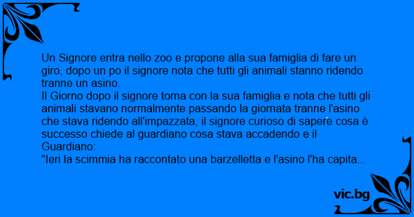 Un Signore entra nello zoo e propone alla sua famiglia di fare un giro, dopo un po il signore nota che tutti gli animali stanno ridendo tranne un asino.