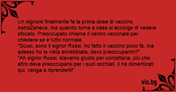 Un signore finalmente fa la prima dose di vaccino AstraZeneca, ma quando torna a casa si accorge di vedere sfocato. Preoccupato chiama il centro vaccinale per chiedere se è tutto normale.