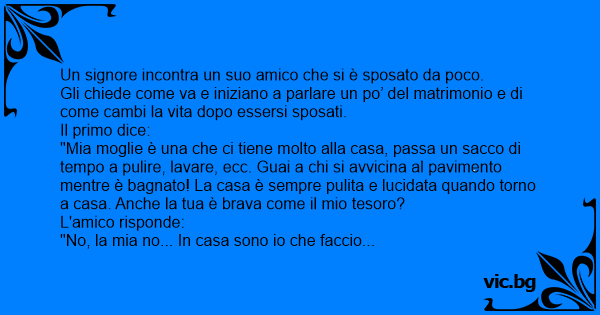 Un signore incontra un suo amico che si è sposato da poco.