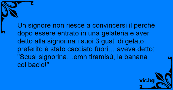 Un signore non riesce a convincersi il perchè dopo essere entrato in una gelateria e aver detto alla signorina i suoi 3 gusti di gelato preferito è stato cacciato fuori… aveva detto: