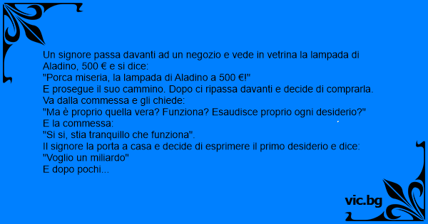 Un signore passa davanti ad un negozio e vede in vetrina la lampada di Aladino, 500 € e si dice: