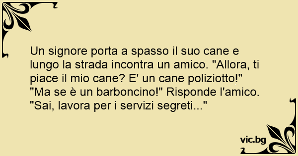 Un signore porta a spasso il suo cane e lungo la strada incontra un amico. "Allora, ti piace il mio cane? E' un cane poliziotto!"