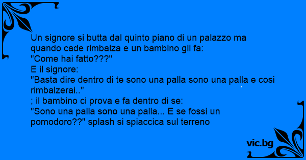 Un signore si butta dal quinto piano di un palazzo ma quando cade rimbalza e un bambino gli fa: