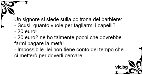 - Scusi, quanto vuole per tagliarmi i capelli?