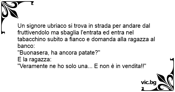 Un signore ubriaco si trova in strada per andare dal fruttivendolo ma sbaglia l'entrata ed entra nel tabacchino subito a fianco e domanda alla ragazza al banco: