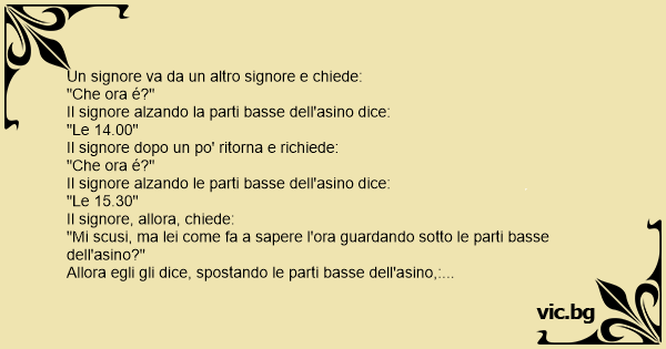 "Mi scusi, ma lei come fa a sapere l'ora guardando sotto le parti basse dell'asino?"