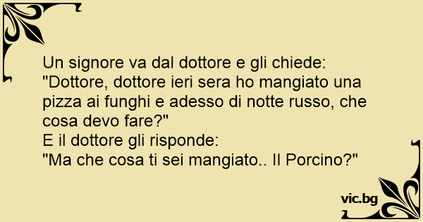 "Dottore, dottore ieri sera hо mangiato una pizza ai funghi e adesso di notte russo, che cosa devo fare?"