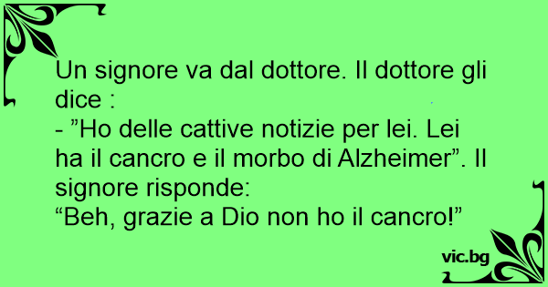 - ”Но delle cattive notizie per lei. Lei ha il cancro e il morbo di Alzheimer”. Il signore risponde: