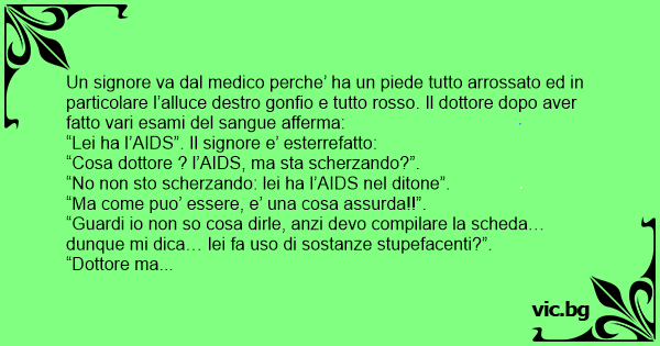 Un signore va dal medico perche’ ha un piede tutto arrossato ed in particolare l’alluce destro gonfio e tutto rosso. Il dottore dopo aver fatto vari esami del sangue afferma: