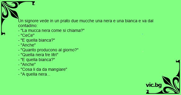 Un signore vede in un prato due mucche una nera e una bianca e va dal contadino:
