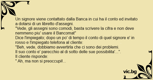 Un signore viene contattato dalla Banca in cui ha il conto ed invitato a dotarsi di un libretto d'assegni.