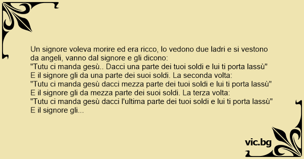 Un signore voleva morire ed era ricco, lo vedono due ladri e si vestono da angeli, vanno dal signore e gli dicono: