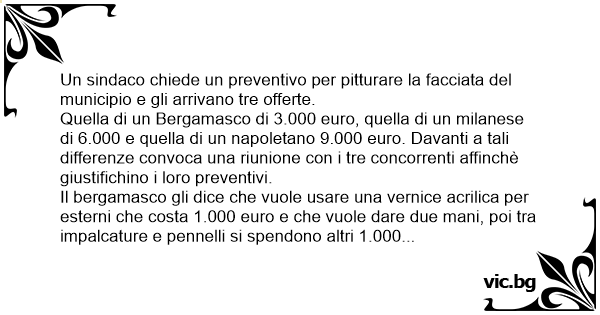 Un sindaco chiede un preventivo per pitturare la facciata del municipio e gli arrivano tre offerte.