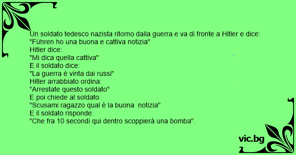 Un soldato tedesco nazista ritorno dalla guerra e va di fronte a Нiтlеr e dice: