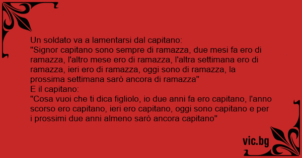 "Signor capitano sono sempre di ramazza, due mesi fa ero di ramazza, l'altro mese ero di ramazza, l'altra settimana ero di ramazza, ieri ero di ramazza, oggi sono di ramazza, la prossima settimana sarò ancora di ramazza"