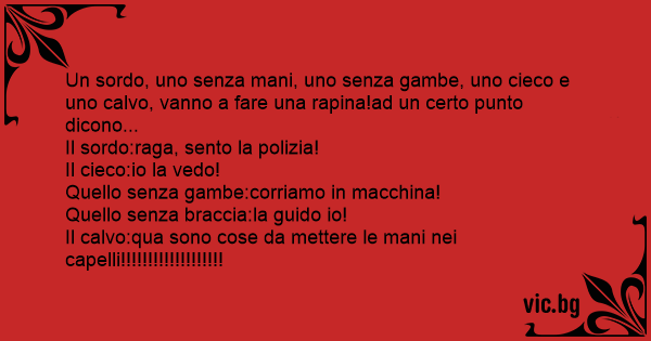 Un sordo, uno senza mani, uno senza gambe, uno cieco e uno calvo, vanno a fare una rapina!ad un certo punto dicono...