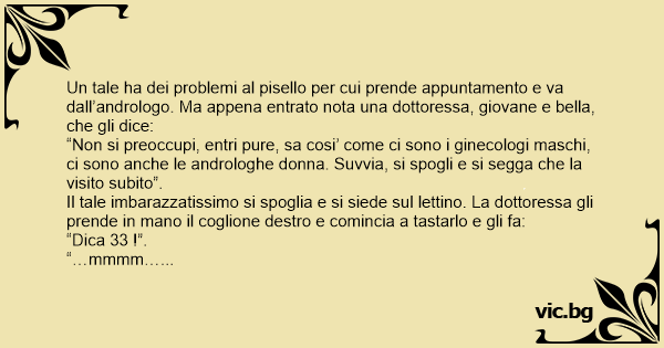 “…mmm… ttttrrreeeentare’…- risponde il tale che ormai non ce la fa piu’ a trattenersi. A quel punto la dottoressa gli prende in mano il рisеllо e comincia a tastare e di nuovo: