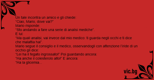 “Ma quali analisi, vai invece dal mio medico: ti guarda negli occhi e ti dice che malattia hai”.