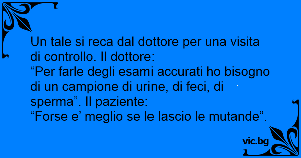 “Per farle degli esami accurati hо bisogno di un campione di urinе, di feci, di sperma”. Il paziente: