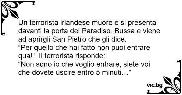 Un terrorista irlandese muore e si presenta davanti la porta del Paradiso. Bussa e viene ad aprirgli San Pietro che gli dice: