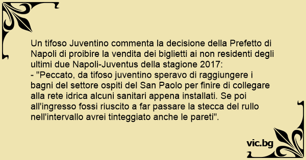 - "Peccato, da tifoso juventino speravo di raggiungere i bagni del settore ospiti del San Paolo per finire di collegare alla rete idrica alcuni sanitari appena installati. Se poi all'ingresso fossi riuscito a far passare la stecca del rullo nell'intervallo avrei tinteggiato anche le pareti".