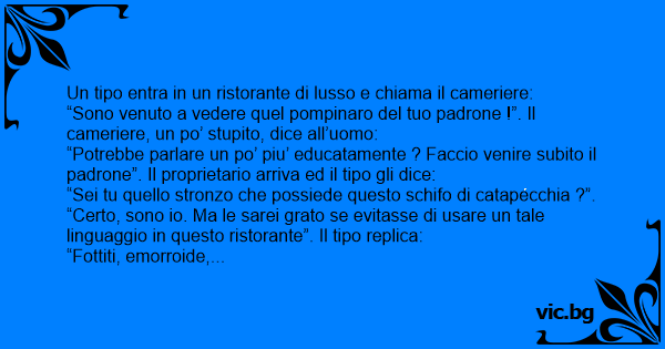“Sono venuto a vedere quel ромрinаrо del tuo padrone !”. Il cameriere, un po’ stupito, dice all’uomo: