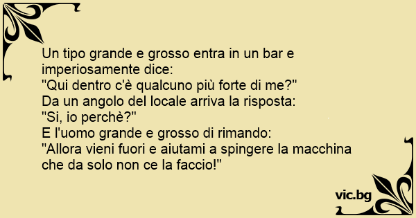 Un tipo grande e grosso entra in un bar e imperiosamente dice: