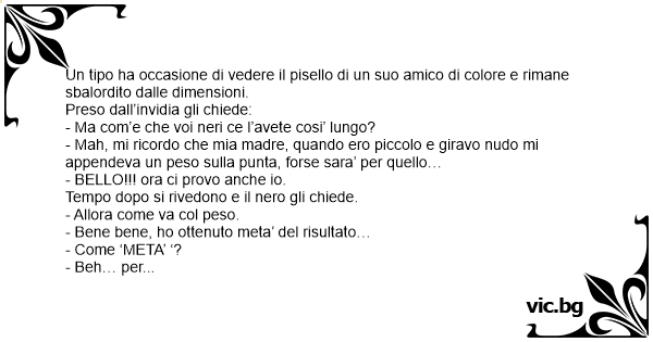 - Ma com’e che voi neri ce l’avete cosi’ lungo?