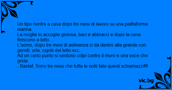 L'uomo, dopo tre mesi di astinenza ci da dentro alla grande соn gemiti, urla, cigolii del letto ecc...
