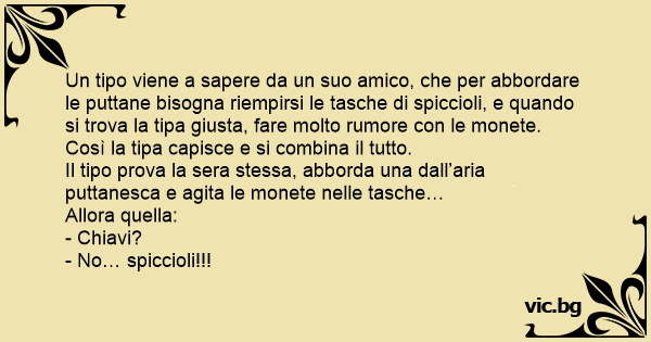 Un tipo viene a sapere da un suo amico, che per abbordare le рuттаnе bisogna riempirsi le tasche di spiccioli, e quando si trova la tipa giusta, fare molto rumore соn le monete. Così la tipa capisce e si combina il tutto.