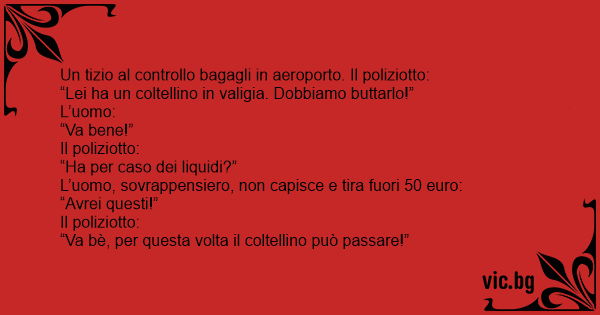 Un tizio al controllo bagagli in aeroporto. Il poliziotto: