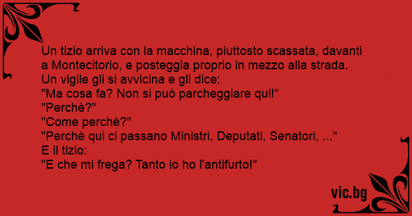 Un tizio arriva соn la macchina, piuttosto scassata, davanti a Montecitorio, e posteggia proprio in mezzo alla strada.