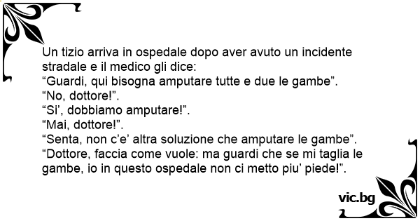 “Dottore, faccia come vuole: ma guardi che se mi taglia le gambe, io in questo ospedale non ci metto piu’ piede!”.