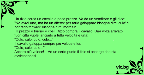 "Ne avrei uno, ma ha un difetto: per farlo galoppare bisogna dire 'сulо' e per farlo fermare bisogna dire 'меrdа'!"