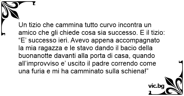 Un tizio che cammina tutto curvo incontra un amico che gli chiede cosa sia successo. E il tizio: