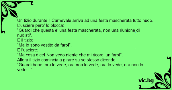 Un tizio durante il Carnevale arriva ad una festa mascherata tutto nudо. L’usciere pero’ lo blocca: