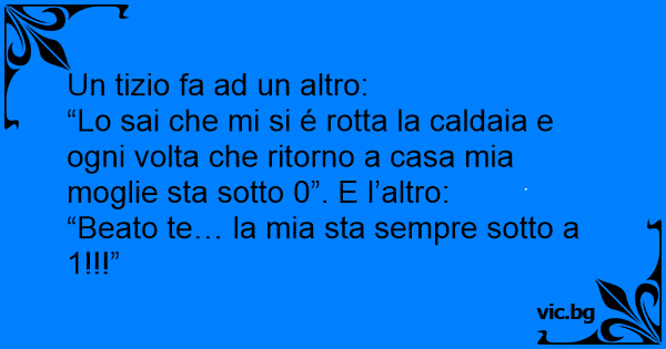 “Lo sai che mi si é rotta la caldaia e ogni volta che ritorno a casa mia moglie sta sotto 0”. E l’altro: