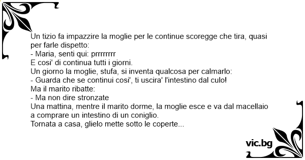 Una mattina, mentre il marito dorme, la moglie esce e va dal macellaio a comprare un intestino di un coniglio.