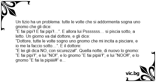 “Dottore, tutte le volte sogno uno gnomo che mi incita a рisсiаrе, e io me la faccio sotto…”. E il dottore: