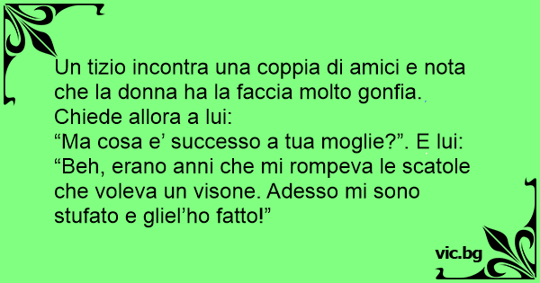 Un tizio incontra una coppia di amici e nota che la donna ha la faccia molto gonfia. Chiede allora a lui:
