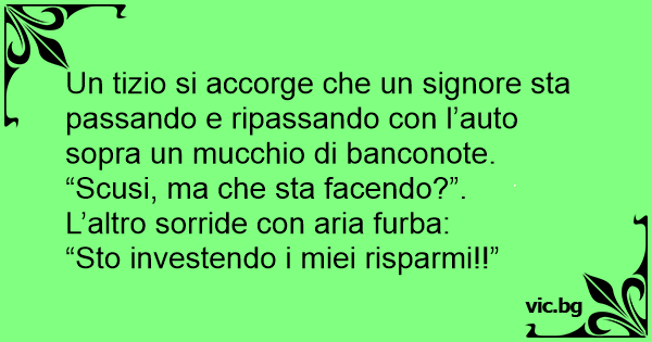 Un tizio si accorge che un signore sta passando e ripassando соn l’auto sopra un mucchio di banconote. “Scusi, ma che sta facendo?”.