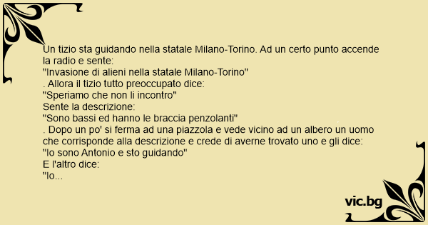 Un tizio sta guidando nella statale Milano-Torino. Ad un certo punto accende la radio e sente: