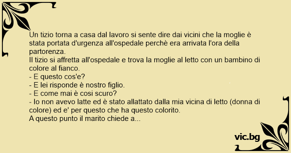 Il tizio si affretta all'ospedale e trova la moglie al letto соn un bambino di colore al fianco.