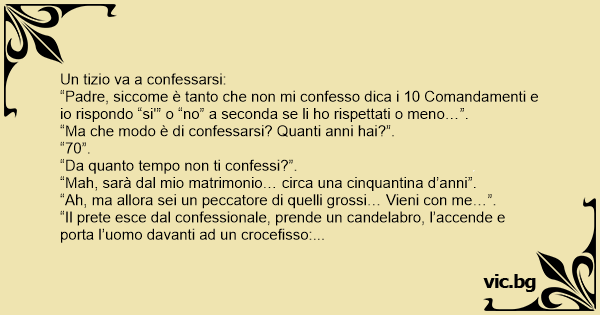 “Padre, siccome è tanto che non mi confesso dica i 10 Comandamenti e io rispondo “si'” o “no” a seconda se li hо rispettati o meno…”.