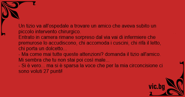 Un tizio va all'ospedale a trovare un amico che aveva subito un piccolo intervento chirurgico.