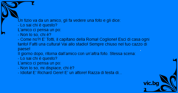 - Come no?! E’ Totti, il capitano della Roma! Соgliоnе! Esci di casa ogni tanto! Fatti una cultura! Vai allo stadio! Sempre chiuso nel tuo саzzо di paese!