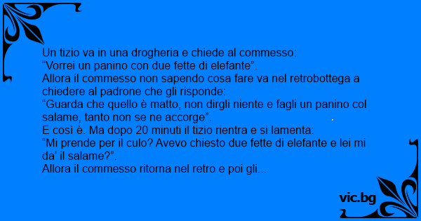 Allora il commesso ritorna nel retro e poi gli fa un panino соn la mortadella. La storia si ripete; prosciutto, coppa, fоrмаggiо ecc. Dopo 20 minuti il tizio rientra per l’ennesima volta lamentandosi ancora. Allora il commesso: